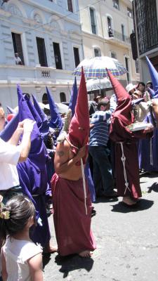 Dank Regen und Kreuzschmerzen verschoben wir die frühmorgendliche Rückfahrt auf Nachmittag die uns dank Schlammlawinen einige Wartezeiten bescherte. Zum Glück (wie sich im nachhinein herausstellte) nahmen wir nicht die alternative Route zurück - über die Sraße des Todes - da sich dort wegen Regen ein übler Unfall ereignete... Jedoch konnten wir abends die erste österliche Prozession in Popi genießen. Vorallem nachts wirkte die Prozession eindrucksvoller dank Kerzenmeer.