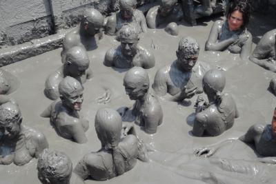 Nach gründlicher Waschung, dank Frauen, die einem einen Kübel Seewasser über den Kopf leerten, was nicht gratis war, genauso wie der Fotograf und die Massage von zwei Berufserfahrenen Schlammmäennern, machten wir Brunch. Cerveza fría. Danach karrte uns die Ecotour Firma zum Lunch an die Küste in ein Fischerdorf - La Bocilla. Zimmer große Beton"häuschen" chaotisch errichtet, hundert Plastiktische mit Sesseln davor aufgebaut und zum Sonnenschutz eine Plane gespannt und fertig war das Restaurante ! Zu Hause angekommen machten wir uns daran den restlichen Schlamm aus unseren Badesachen und Körperöffnungen zu waschen. Frisch getunet mit gratis tinto gings wieder ab zum Terminal - mit dem Nachtbus nach Medellin (12h).